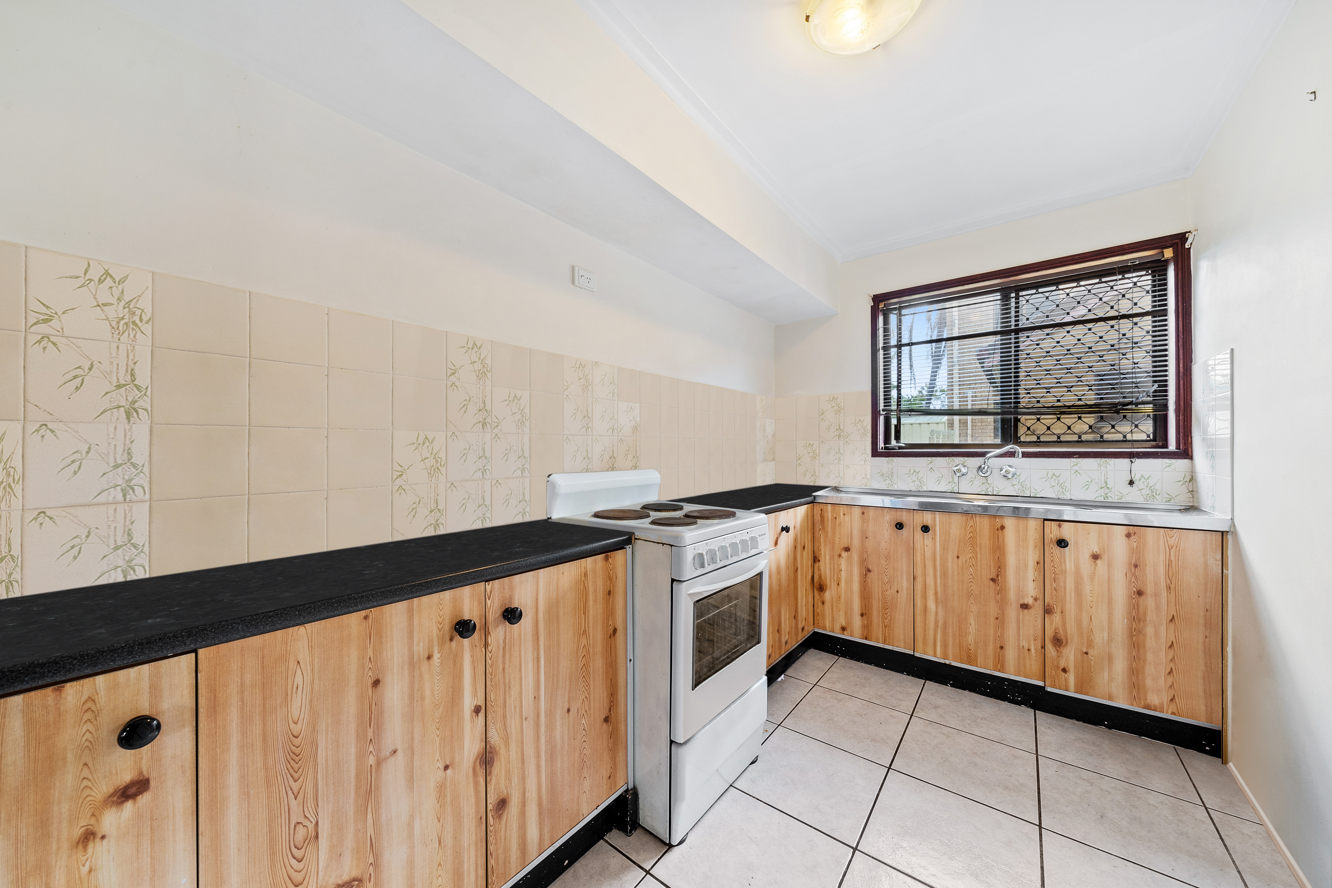 - Single Lock-Up Garage: Secure your vehicle and enjoy additional storage space. - Three Bedrooms: Spacious rooms with carpet flooring. The master bedroom features air conditioning and a built-in wardrobe. - Open Plan Living & Dining Area: Perfect for comfortable living and entertaining guests. - Functional Kitchen: Equipped with an electric cooktop, oven, sink, and a window overlooking the private outdoor courtyard. - Bathroom: Includes a vanity, toilet, and a shower. - Laundry: Conveniently located in the garage with a sink and plenty of storage.