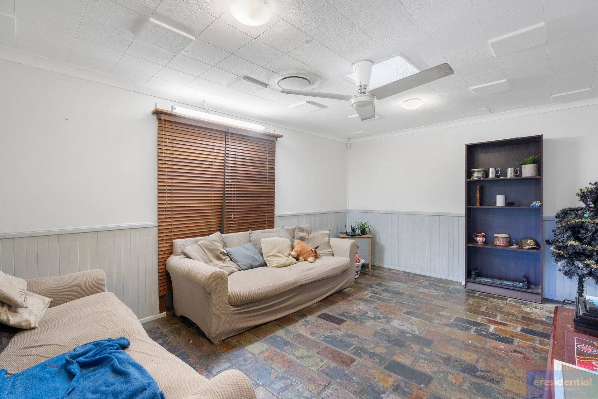 Step into the inviting lounge, where stylish slate flooring and warm timber accents create a welcoming atmosphere that flows seamlessly into the dining area. The large windows bathe the space in natural light, while the neat and tidy kitchen boasts ample bench space and room for a generously-sized fridge-perfect for meal prep and family gatherings.